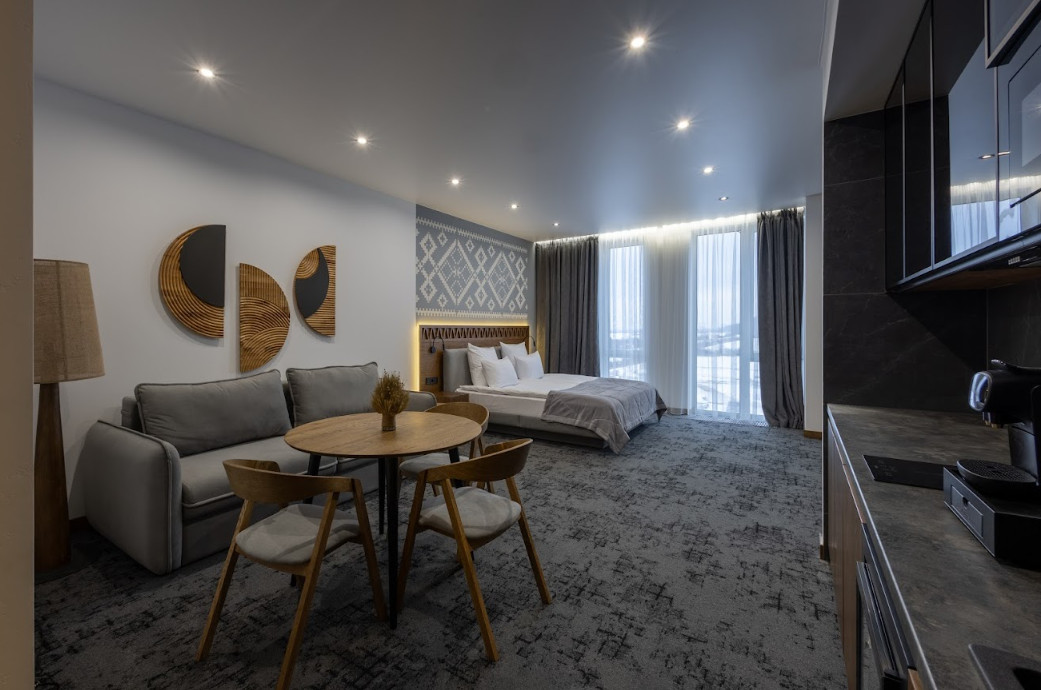 Гості проживають у просторих апартаментах європейського рівня з кухнею, окремими спальнями та терасами. Курорт орієнтований на сім’ї з дітьми та підходить як для короткого, так і для тривалого відпочинку.